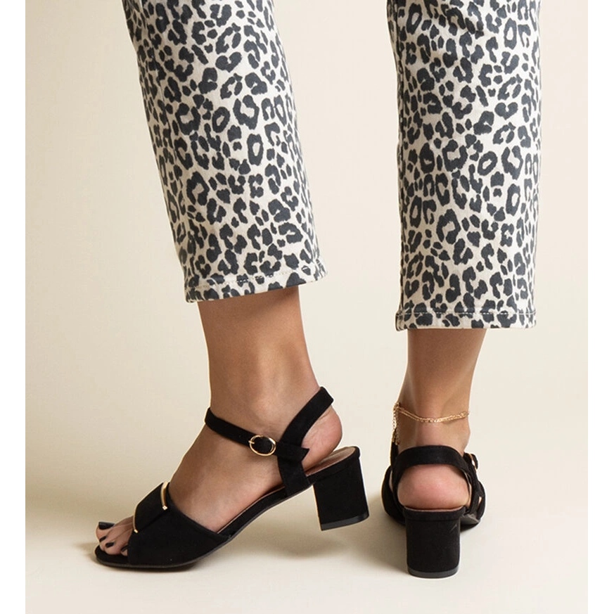 Detalhes: Sandália preta de salto baixo da Frederica preto