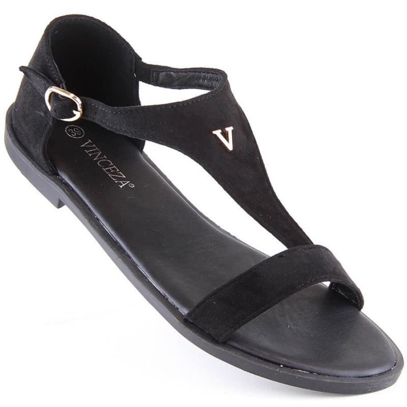 Vinceza Sandália rasa de camurça Vinceza W 17270 preta preto