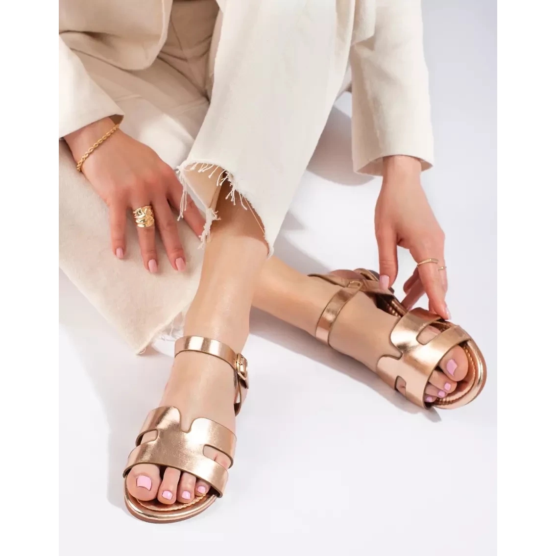 Perfeito para a temporada de primavera/verão - Sandals Gold Shevet é uma combinação de conveniência e brilho discreto todos os dias.