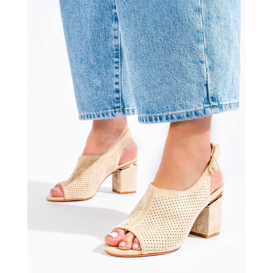 São perfeitos para passeios noturnos, festas e comemorações, agregando elegância e feminilidade. O salto aberto e sem biqueira garantem conforto de uso, enquanto o salto bloco de 8 centímetros garante estabilidade e conforto.