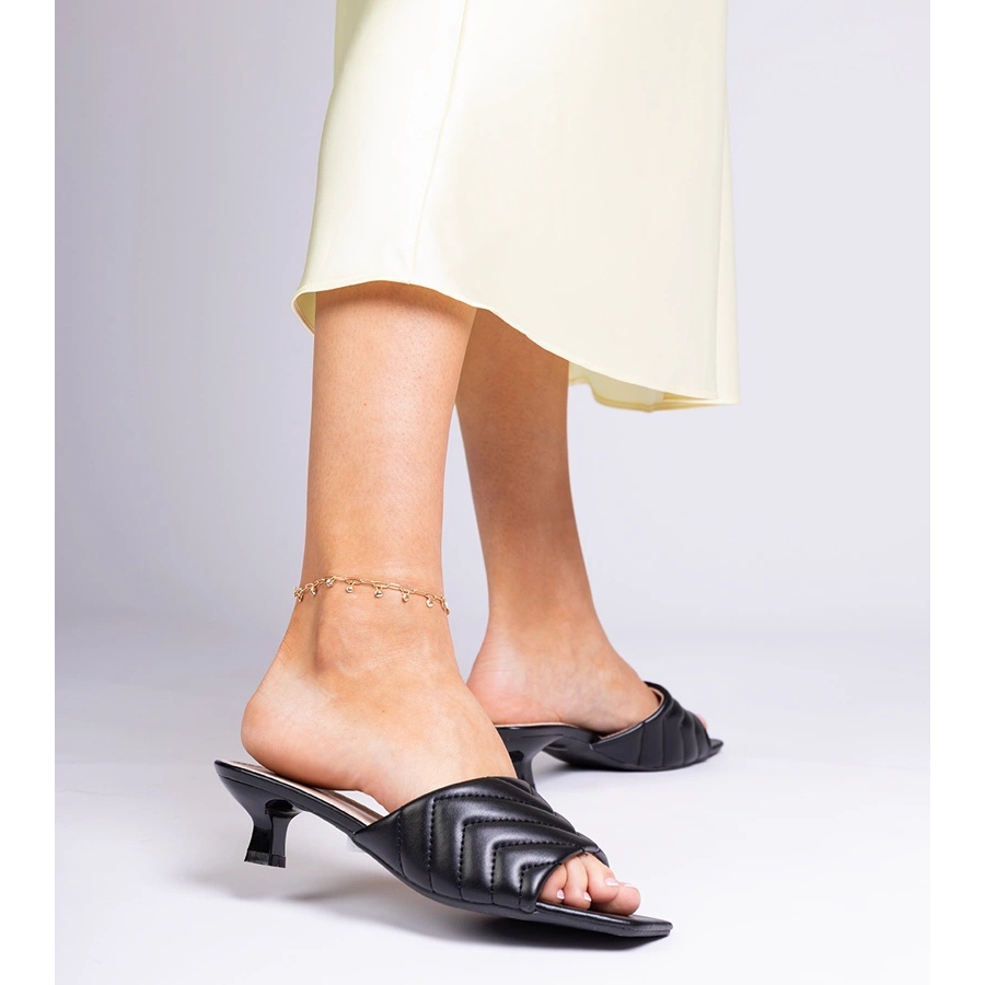 - Design: Descoberto nariz quadrado e calcanhar descoberto; tira larga com acolchoado