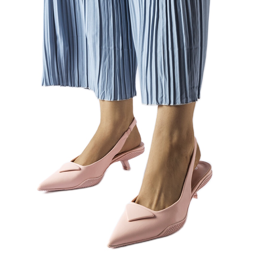 Detalhes: Sandália salto baixo rosa, Labonté branco