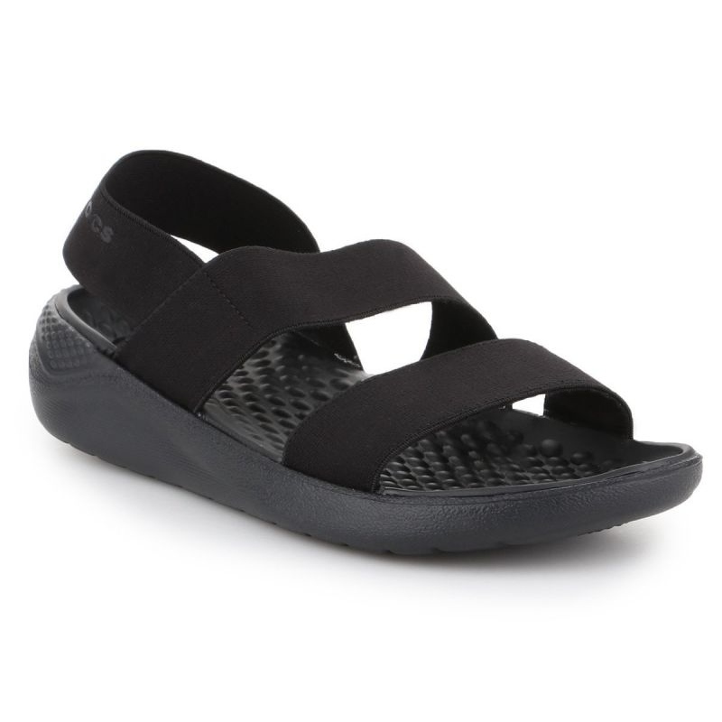 As sandálias Crocs Literide Stretch Sandal W 206081-060 na cor preta são a opção ideal para mulheres que procuram calçados de verão confortáveis e modernos. Estas sandálias desportivas aliam leveza e conforto, o que as torna perfeitas para a praia, piscina ou passeios do dia a dia.