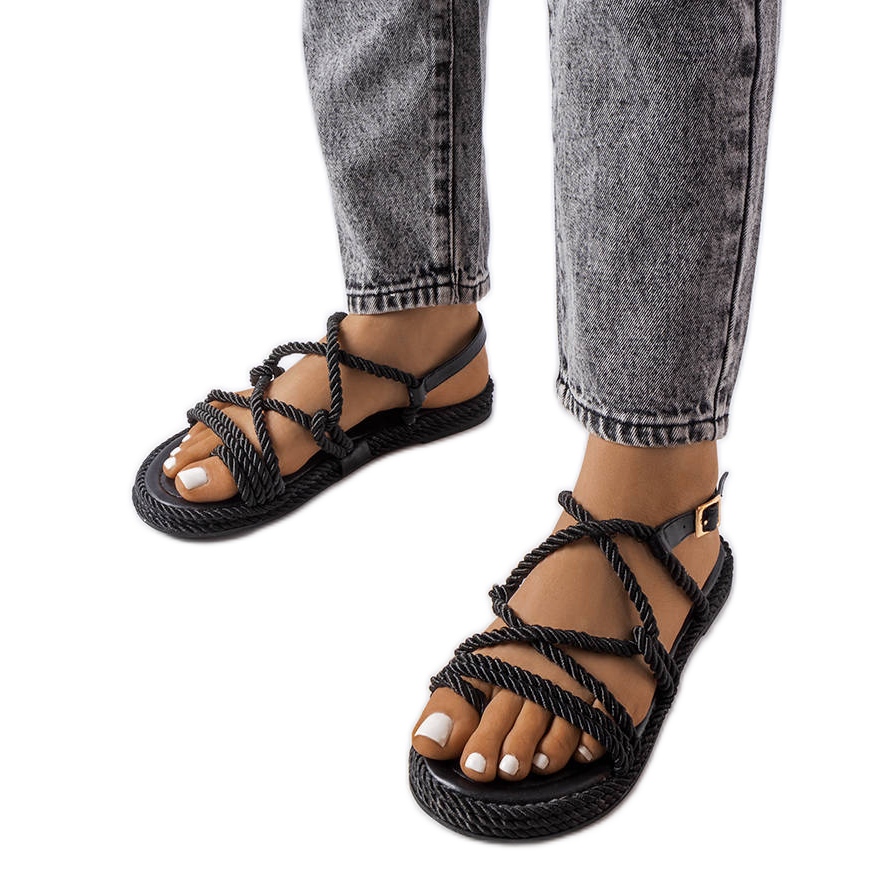 As sandálias na clássica cor preta são extremamente versáteis - ficam lindas tanto com vestidos leves quanto com calças largas. Graças ao salto plano (altura 2 cm), certamente não cansará os pés, mesmo em longas caminhadas. As sandálias são equipadas com uma fivela confortável, que permite um ajuste perfeito ao pé.