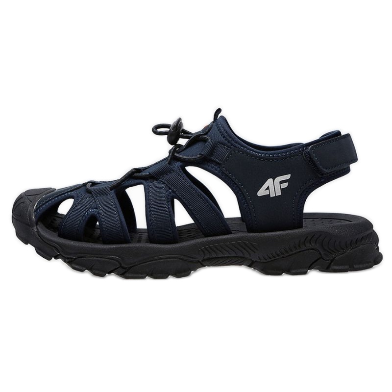 Um modelo leve e conveniente de sandálias infantis 4F, projetadas para crianças ativas. A combinação de materiais duráveis e soluções práticas (ajuste de velcro, palmilha de EVA) garante o conforto do desgaste e um pouco do pé enquanto tocava e viagens.