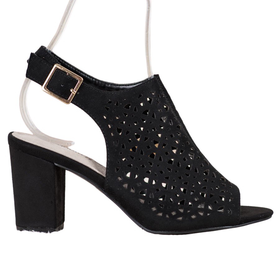As sandálias caracterizam-se por uma superfície perfurada que não só atrai o olhar, mas também proporciona ventilação adequada aos pés. Graças ao salto bloco de 8,5 cm, cada passo é estável e você poderá desfrutar de uma noite cheia de dança e diversão. O fecho com fivela permite um fácil ajuste ao pé, o que aumenta o conforto de uso.