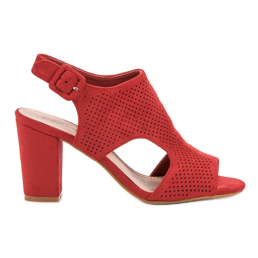 Descubra sandálias exclusivas de salto alto com aberturas em uma cor vermelha intensa que darão personalidade a qualquer estilo de verão. Estes sapatos elegantes, confeccionados em couro camurça ecológico, proporcionam não só um aspecto estético, mas também conforto de uso graças a um salto de 8,5 cm de altura perfeitamente equilibrado.
