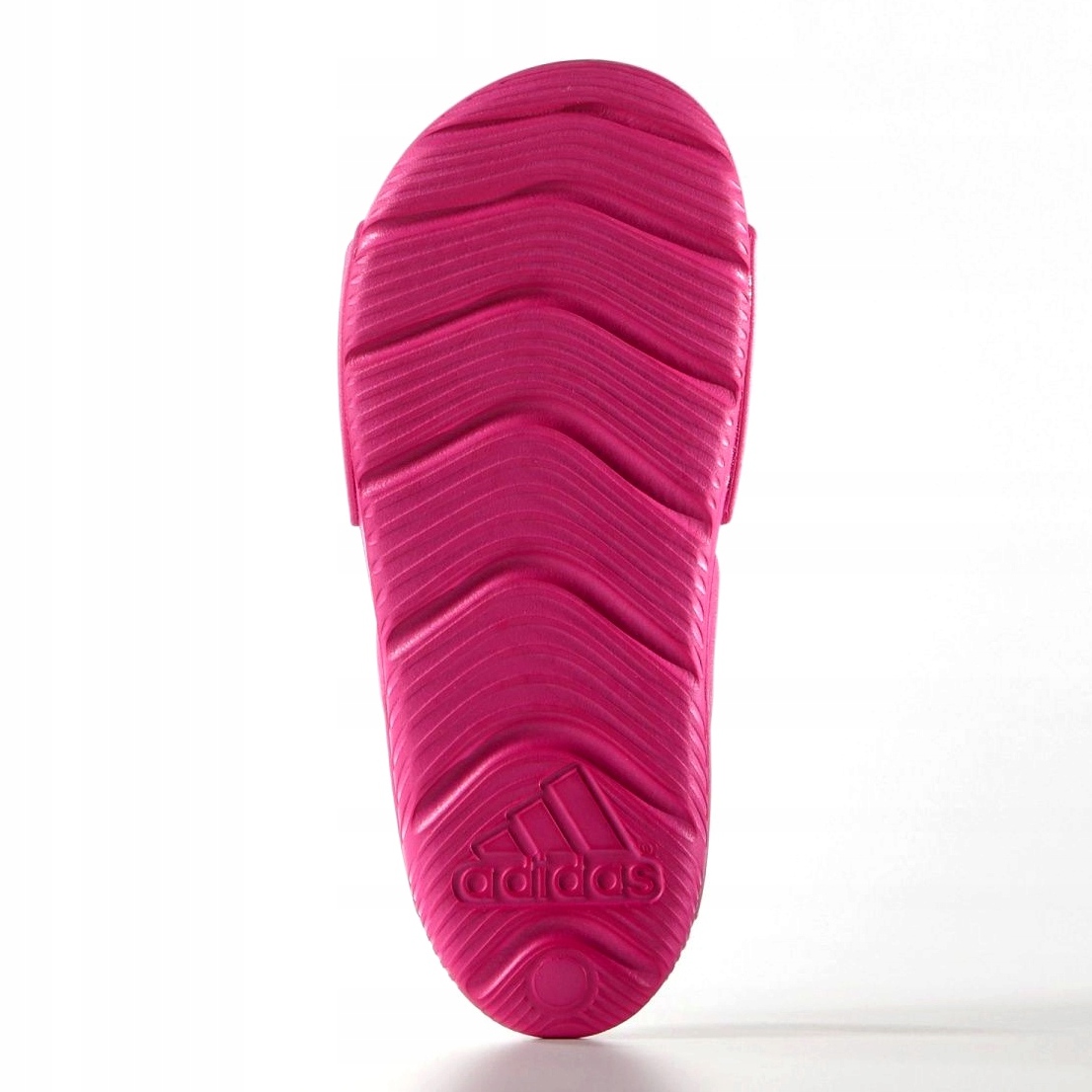 A elegante cor rosa das sandálias foi enriquecida com acessórios brancos e as características três listras adidas que lhes conferem um caráter esportivo. Com um pequeno logotipo branco do fabricante bem na frente, essas sandálias serão o modelo preferido de todas as meninas.