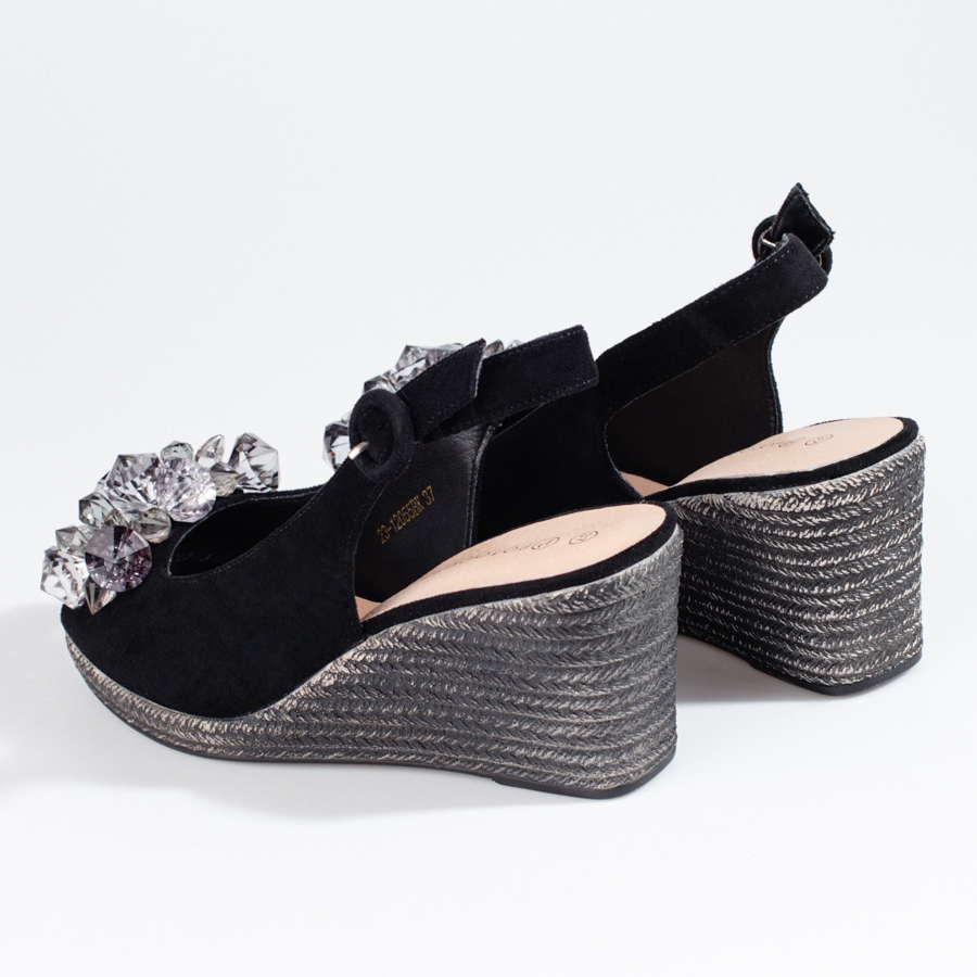 Descubra elegância e conforto graças às sandálias alpercatas femininas de cunha do renomado fabricante W. Potocki. Estas sandálias pretas são a combinação perfeita de estilo clássico com toques modernos que vão funcionar em muitas situações - desde festas de verão até passeios do dia a dia.