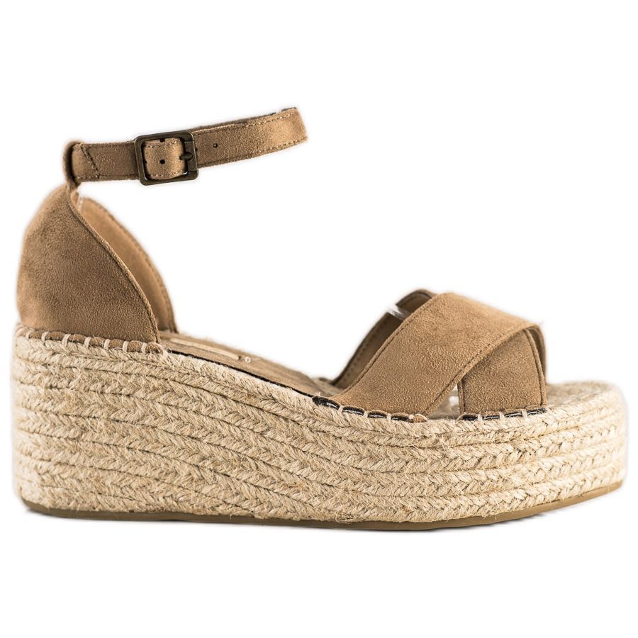 Confeccionadas em imitação de camurça de alta qualidade, essas sandálias proporcionam não só um aspecto estético, mas também conforto de uso graças ao forro têxtil. O calcanhar aberto e a fivela tornam fácil e conveniente calçar e tirar os sapatos. Uma plataforma de 4 cm de altura e um salto de 7 cm acrescentam alguns centímetros sem sacrificar o conforto.