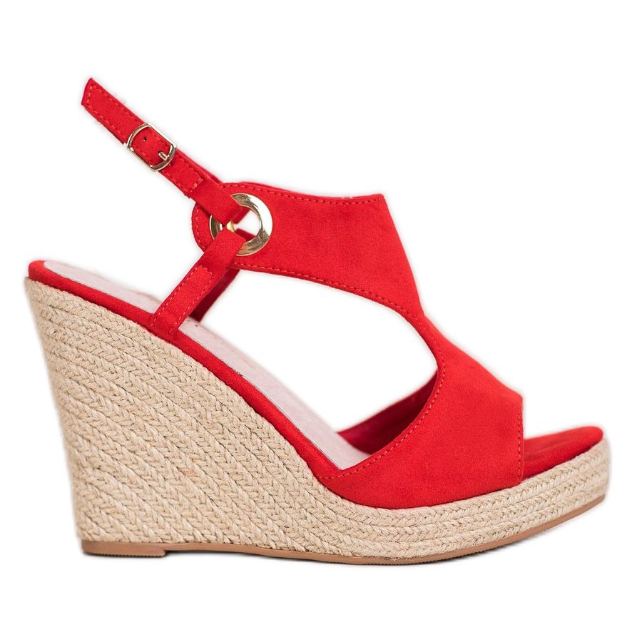 Este modelo distingue-se por um fecho de fivela ajustável, que garante um uso confortável e um ajuste perfeito ao pé. As sandálias possuem cunha de 10,5 cm, que são decoradas com cordão trançado, conferindo um visual marcante ao conjunto. Sua sola sintética lisa garante durabilidade e conforto durante o uso, e a plataforma de 2 centímetros faz com que aumentem opticamente a altura sem sacrificar o conforto.