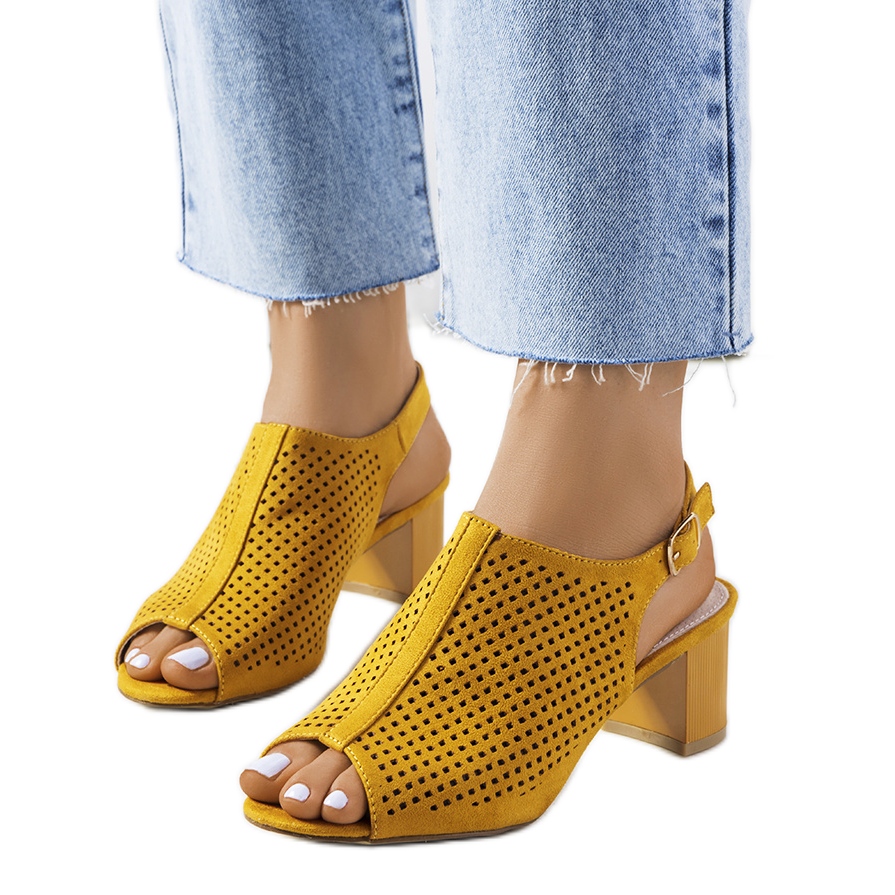 Descubra elegância e conforto com as sandálias de salto alto Belinda com aberturas amarelas. Esses lindos sapatos, criados pela marca Buty inne, combinam design moderno e formato clássico, combinando perfeitamente com as tendências da moda. Confeccionados em couro ecológico, proporcionam não só um visual estiloso, mas também conforto de uso graças ao encaixe em couro natural.