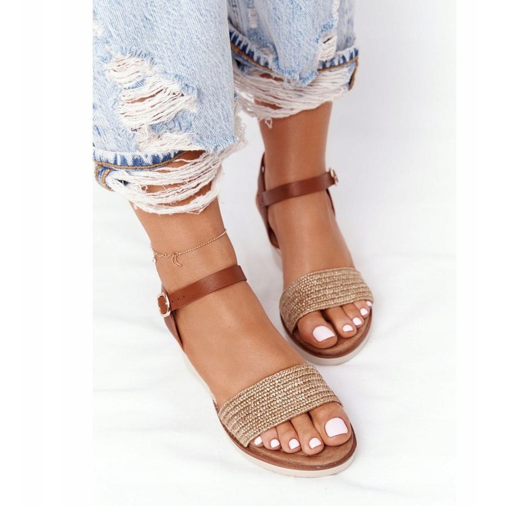 EVE Sandálias bege com salto em cunha e tranças em Tenerife marrom