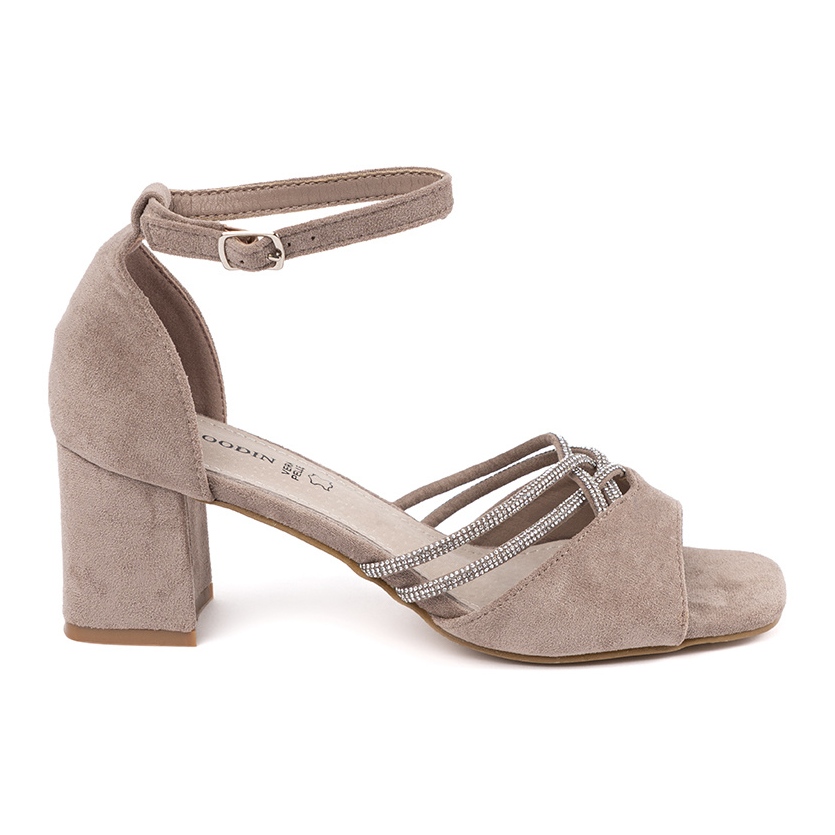Feito de couro ecológico de camurça, as sandálias não apenas parecem elegantes, mas também são ecológicas. O interior feito de couro natural garante alto conforto de uso. Uma vantagem adicional são os strass sutis, que lhes dão um brilho especial, tornando -os um complemento perfeito para estilizações elegantes.