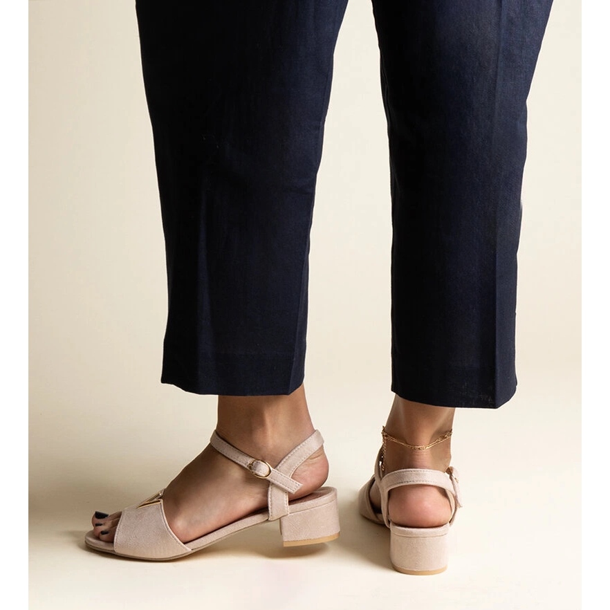 Detalhes: Sandálias bege de salto baixo com fivela Horner
