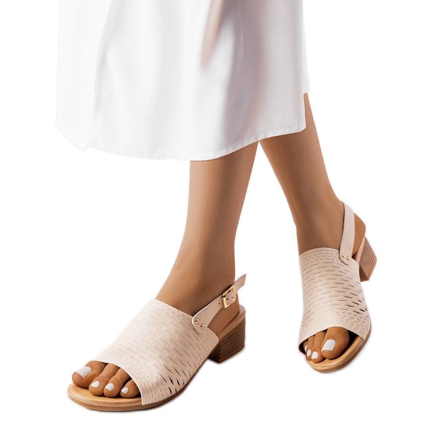Aqui está a escolha perfeita para mulheres que valorizam a elegância clássica combinada com o conforto de uso - Sandálias BM Beige com salto baixo Desert Beige. É o complemento perfeito para o seu guarda-roupa de verão e combina bem com looks casuais e mais formais.