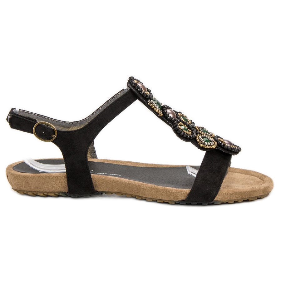 As decorações pretas, incluindo strass, dão às sandálias um brilho sutil, e as cores suaves fazem com que combinem com vários estilos - tanto casuais quanto mais elegantes. Confeccionados em couro camurça ecológico, além de ecologicamente corretos, são extremamente elegantes.