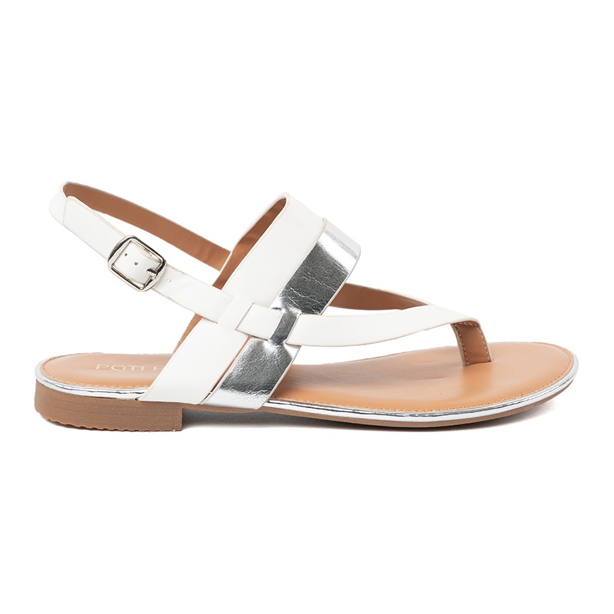 Detalhes: Shelvt Sandálias brancas e prateadas com cinto largo multicolorido