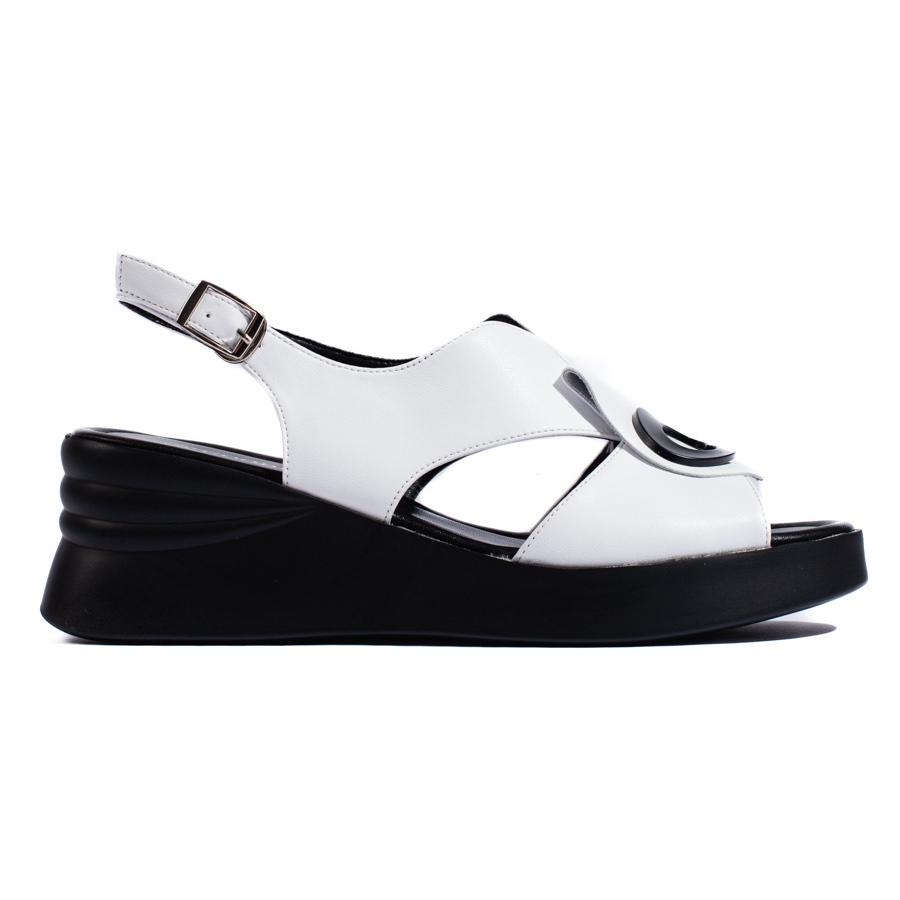 Uma vantagem adicional é a inserção confortável do couro ecológico, que aumenta significativamente o conforto do uso. As sandálias presas com uma fivela são fáceis de comprar e desmontar, e seu corte clássico os torna um complemento perfeito para trajes cotidianos e mais formais.