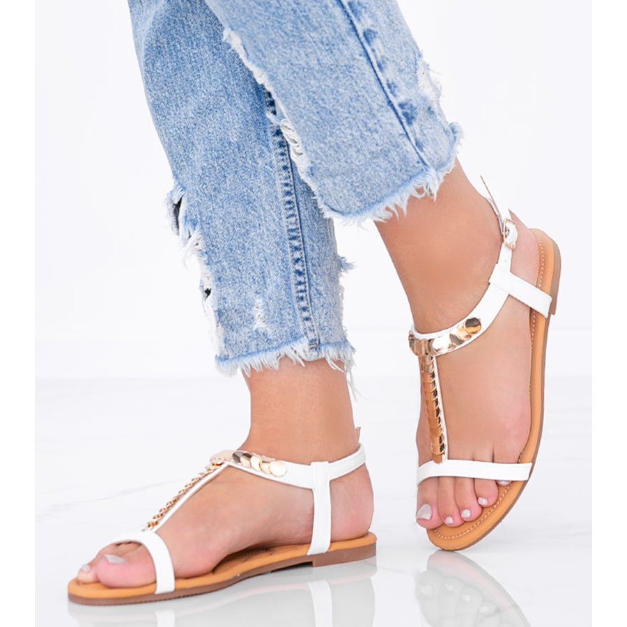 Descubra as sandálias Emmie femininas brancas - a quintessência do estilo e conforto do verão! Estas sandálias exclusivas, confeccionadas em couro ecológico de alta qualidade, combinam elegância e funcionalidade. Caracterizam-se por um design original com uma atractiva aplicação de placas de ouro, o que lhes confere um encanto único.