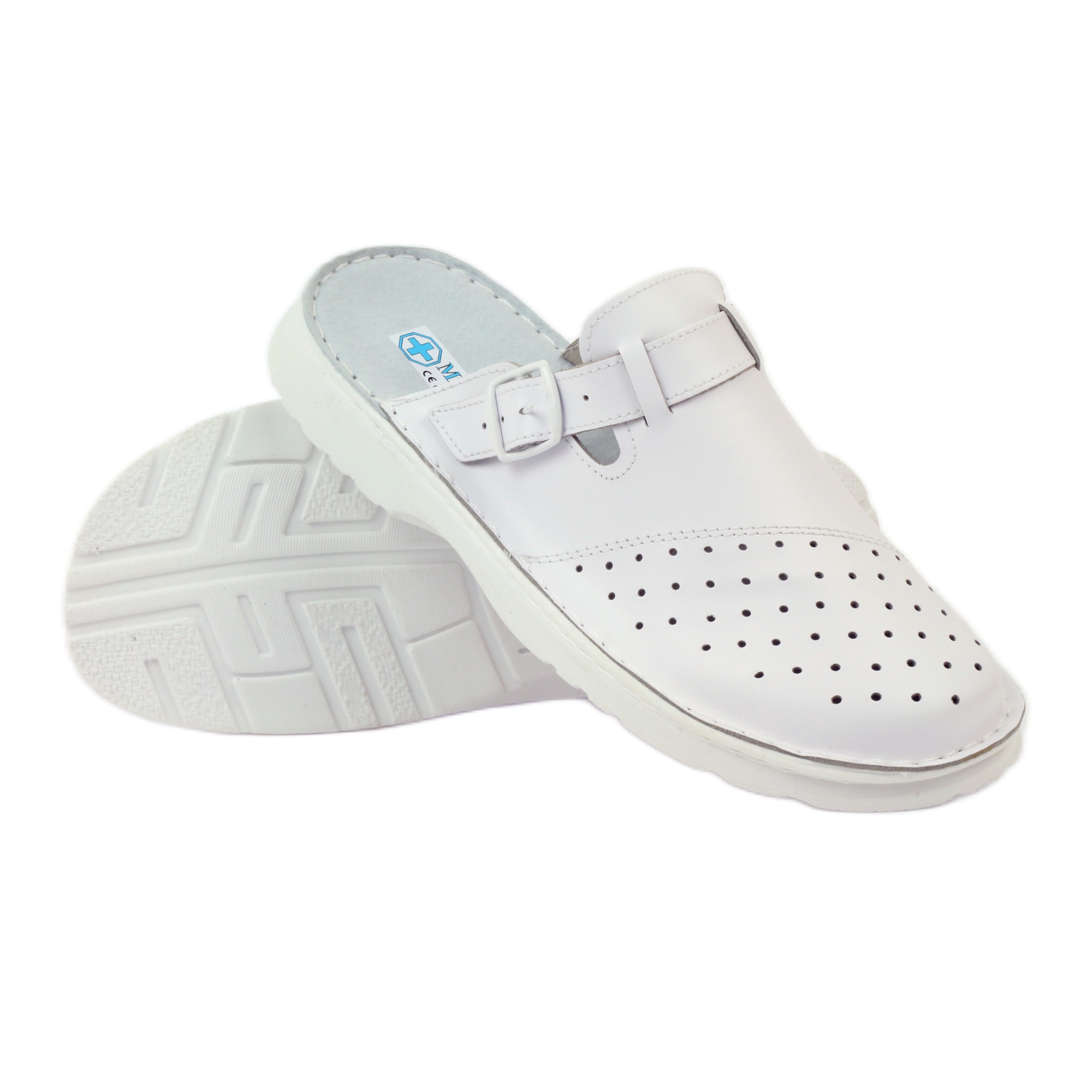 Oferecemos Sandálias Médicas 1055 na elegante cor branca, que além de ficarem lindas, proporcionam conforto e suporte para os pés. Feitos de couro granulado natural de alta qualidade, esses chinelos combinam estilo com funcionalidade, tornando-os a escolha ideal para equipes médicas e pessoas que valorizam o conforto do dia a dia.