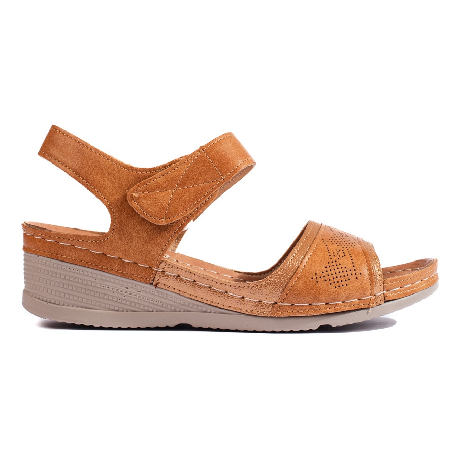 Detalhes: Sandálias camelo femininas com velcro castanho