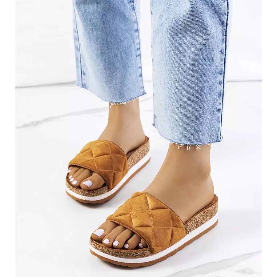Apresentamos chinelos Galts castanhos com sola de cortiça da marca BM - a escolha perfeita para o verão! Estes elegantes chinelos certamente enriquecerão o seu estilo de verão e adicionarão elegância e conforto. Confeccionados em camurça ecológica, com lindo padrão acolchoado, combinam design moderno e conforto de uso.
