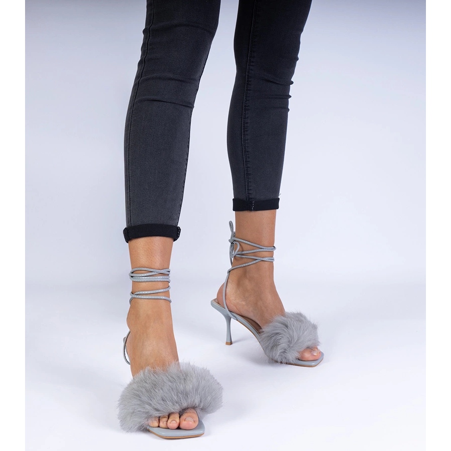 Apresentamos sandálias cinzentas em um salto com pêlo - a escolha perfeita para mulheres modernas que desejam combinar elegância com conforto. Esses sapatos elegantes certamente se tornarão um elemento favorito do seu guarda -roupa.
