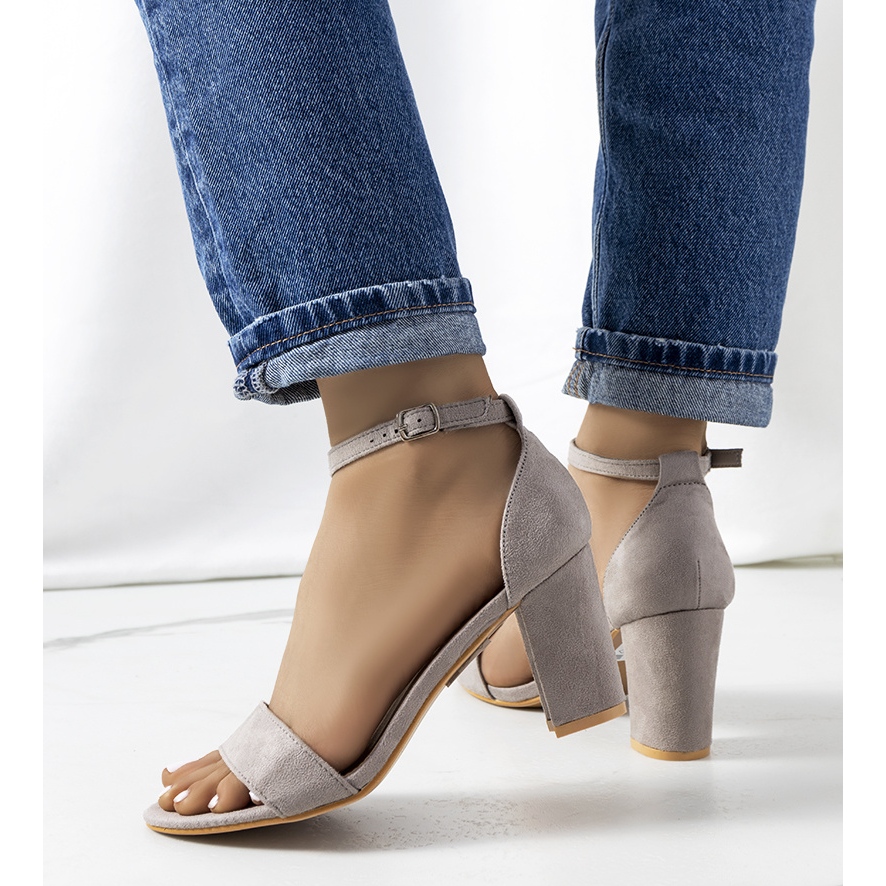 Detalhes: PA1 Sandálias cinzentas no poste Karella amarelo