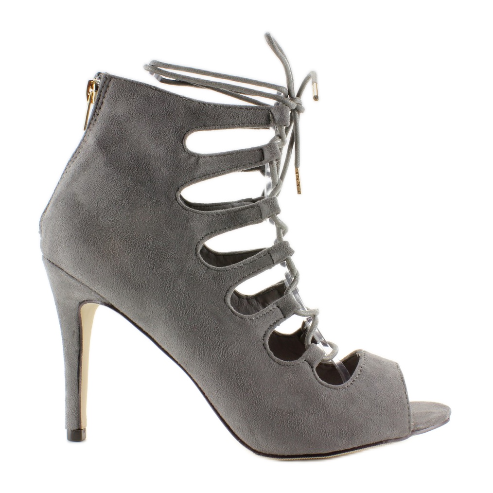Detalhes: Sandálias com cadarço em um salto alto Qq01P cinza
