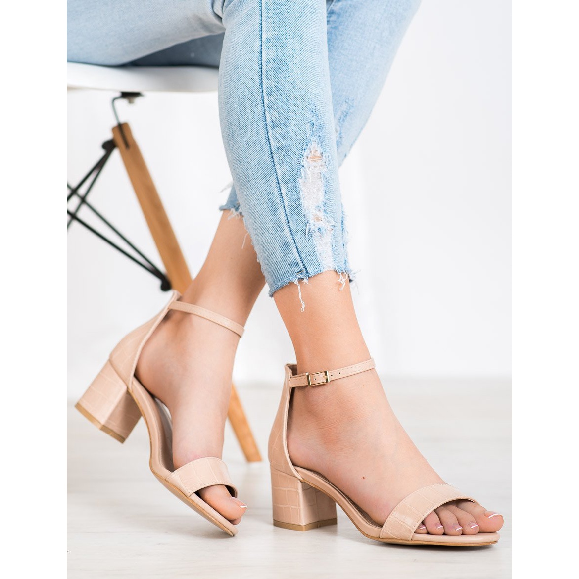 As sandálias Seastar caracterizam-se pela biqueira aberta e salto embutido, o que garante não só um look elegante, mas também conforto de uso. A pulseira superior é feita de material de alta qualidade e termina com uma fivela dourada, que enfatiza seu design clássico. O salto em forma de bloco de 6 cm de altura garante estabilidade e conforto, perfeito tanto para passeios noturnos quanto para festas.