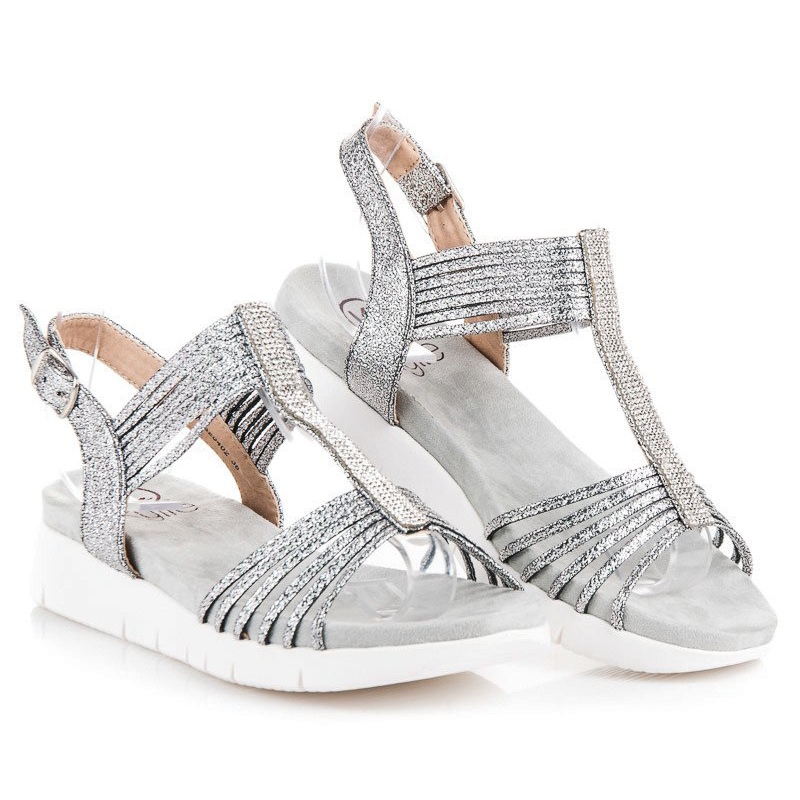 As Sandálias Kylie Com Cristais em tom de cinza são a escolha perfeita para mulheres que querem aliar estilo com conforto. Estes sapatos brilhantes distinguem-se por um design moderno e cristais arrojados e brilhantes que lhes conferem um carácter único. Feitas com materiais de alta qualidade, as sandálias são confortáveis de usar graças às cunhas estáveis de 3 cm de altura.