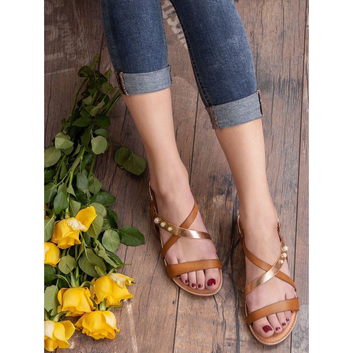 Descubra extraordinária elegância e conforto com as sandálias Small Swan em tom de castanho com pérolas decorativas. Estas sandálias exclusivas são a escolha perfeita para mulheres que querem se destacar na multidão e se sentir femininas todos os dias. O seu corte clássico e acabamento original fazem deles um elemento perfeito para qualquer estilo de verão.