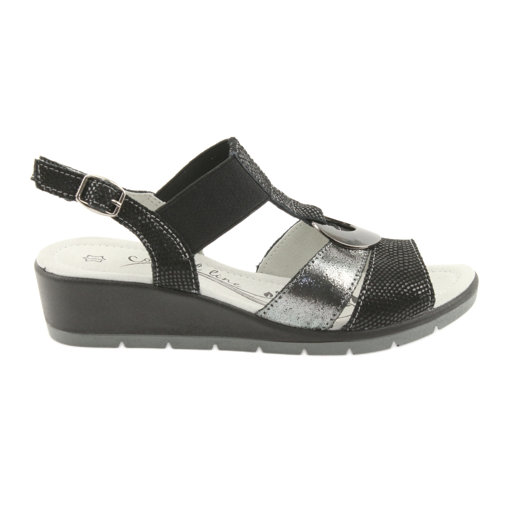 As elegantes sandálias de couro com cunha da Filippo são a escolha perfeita para os dias de primavera e verão. O modelo 745 em tons de preto e prata impressiona pelo seu formato clássico e moderno. Feitas de couro natural de alta qualidade, essas sandálias proporcionam não apenas um visual estiloso, mas também um conforto de uso incomparável.