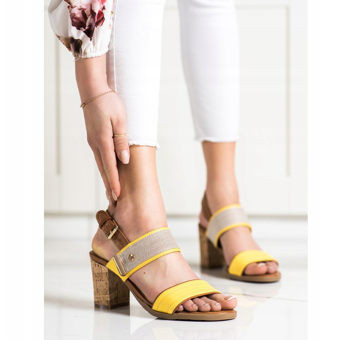 Descubra as sandálias de salto alto exclusivas da marca Evento que vão dar um toque de frescura ao seu guarda-roupa de verão! Decorados em alegres tons de amarelo e castanho, estes elegantes sapatos são a escolha perfeita para os dias quentes quando pretende aliar conforto a um look elegante.