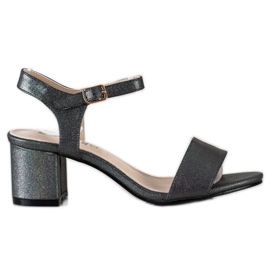 A altura do salto de 6,5 cm é um compromisso perfeito entre elegância e estabilidade, e a sola de plástico com banda de rodagem garante uma aderência adequada. As sandálias são fechadas com fivela, o que permite um ajuste perfeito ao pé.