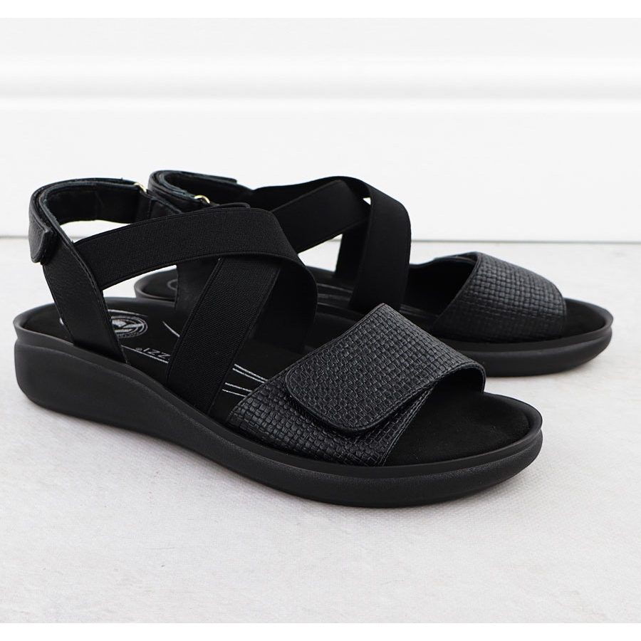 Detalhes: Sandálias confortáveis para mulheres para Velcro Black Jezzi 24142 preto
