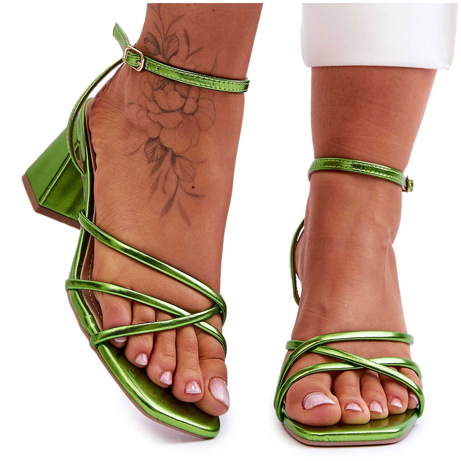 Detalhes: Sandálias da moda com salto alto verde Felisa
