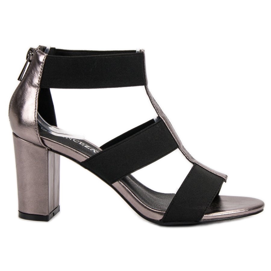 As modernas sandálias de salto alto VINCEZA em um elegante tom de cinza são a escolha perfeita para mulheres que valorizam estilo e conforto. Confeccionadas em material têxtil de alta qualidade e couro ecológico brilhante, essas sandálias são um complemento perfeito para o estilo do dia a dia e da noite. Um salto estável de 8 cm torna um prazer caminhar e dançar com estes sapatos.