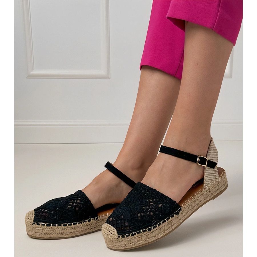 Detalhes: Sandálias de alpargalhe preta aberta preto