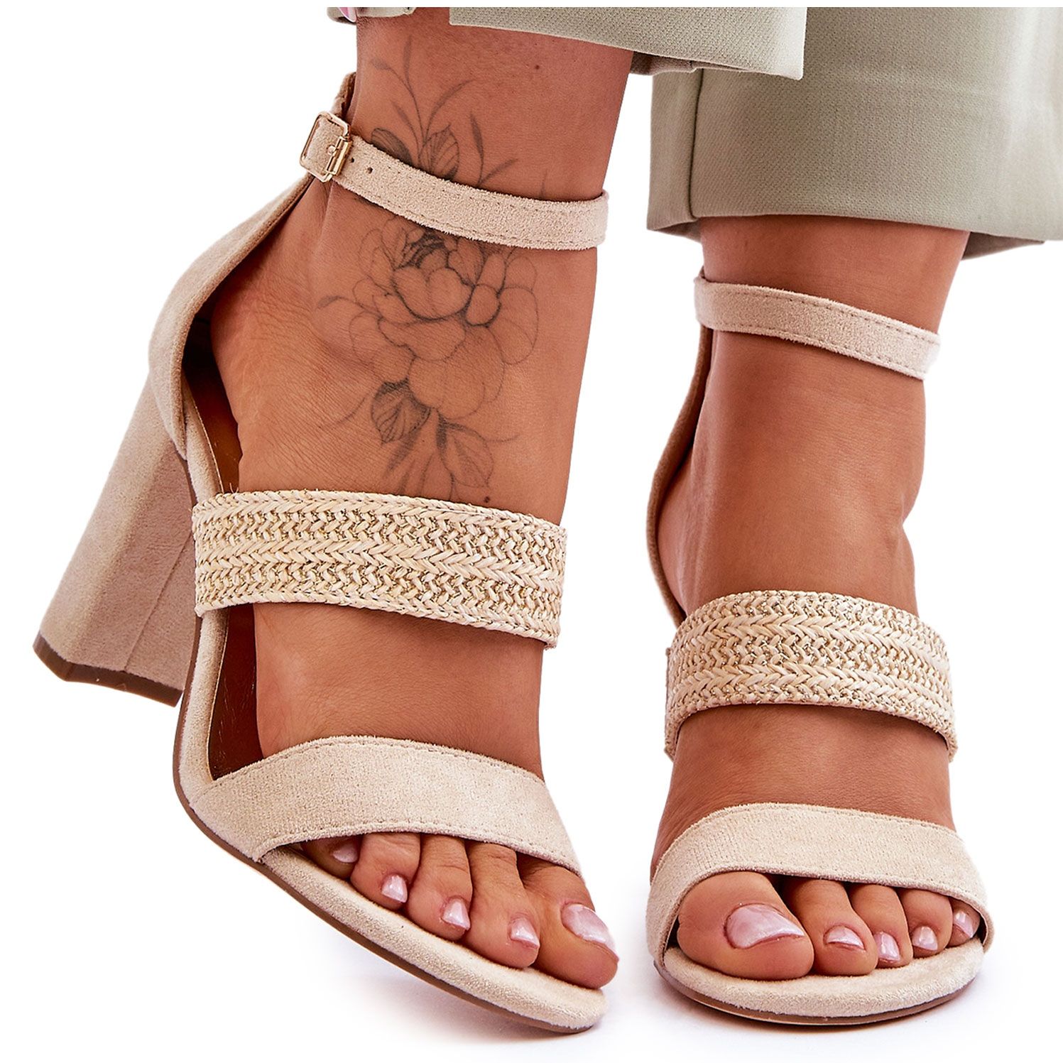 Detalhes: Sandálias de Camurça com Salto Trançado Bege Roselia