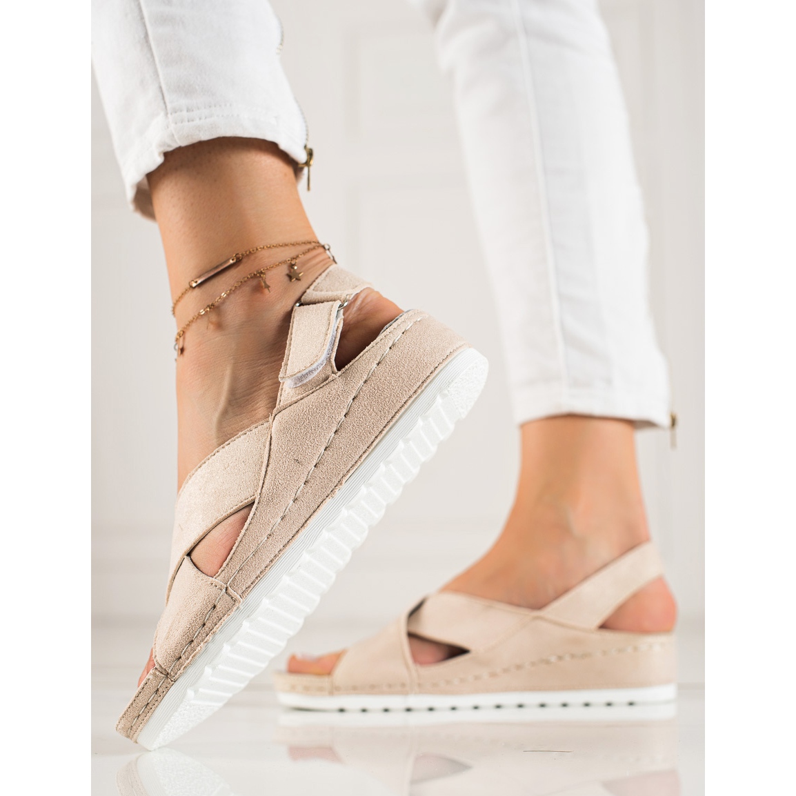 Detalhes: Sandálias de camurça com velcro VINCEZA bege