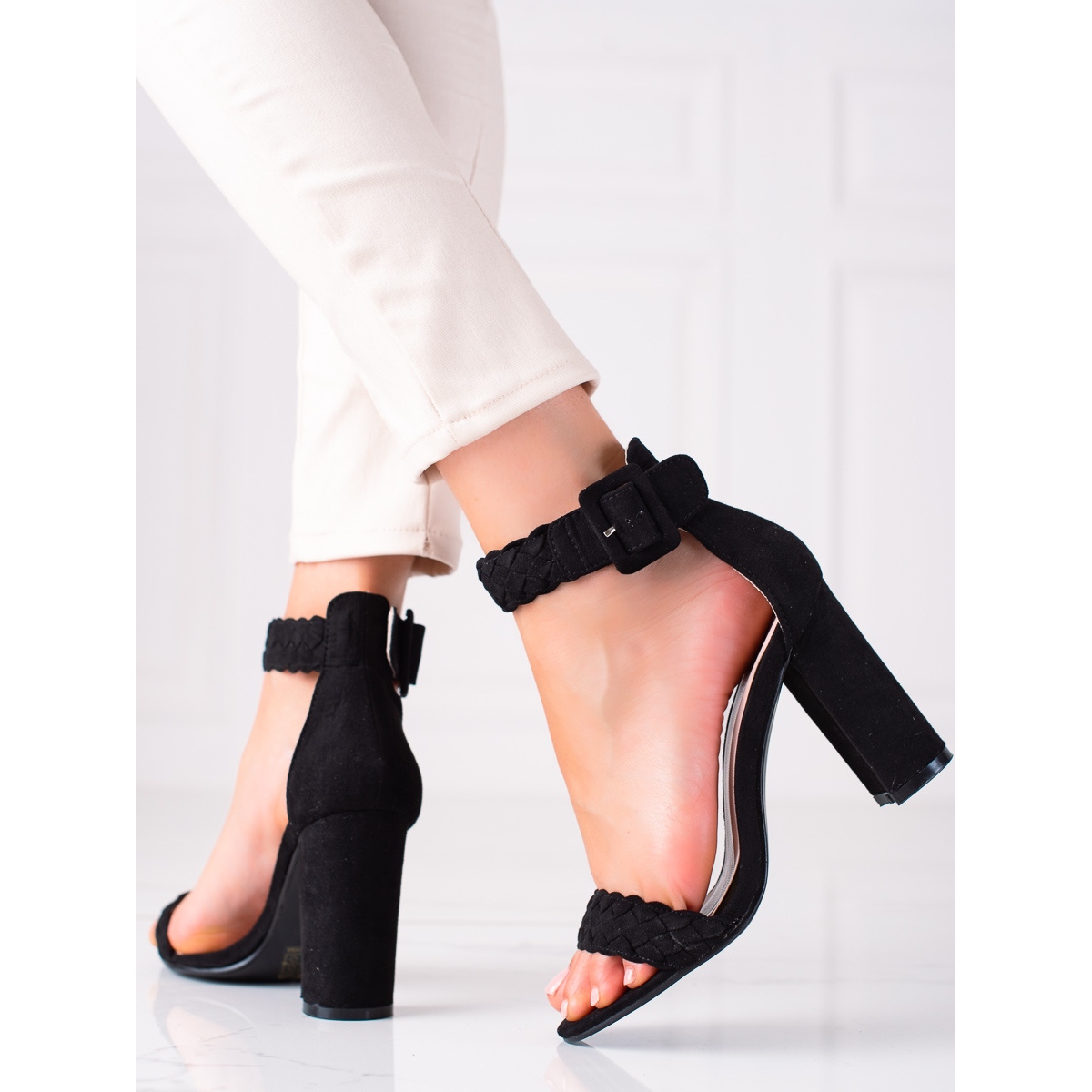 As sandálias de salto alto em camurça da SHELOVET são a escolha perfeita para mulheres que desejam combinar elegância com estilo moderno. Estes sapatos elegantes na clássica cor preta são perfeitos para várias ocasiões - desde passeios noturnos, passando por celebrações, até festas.
