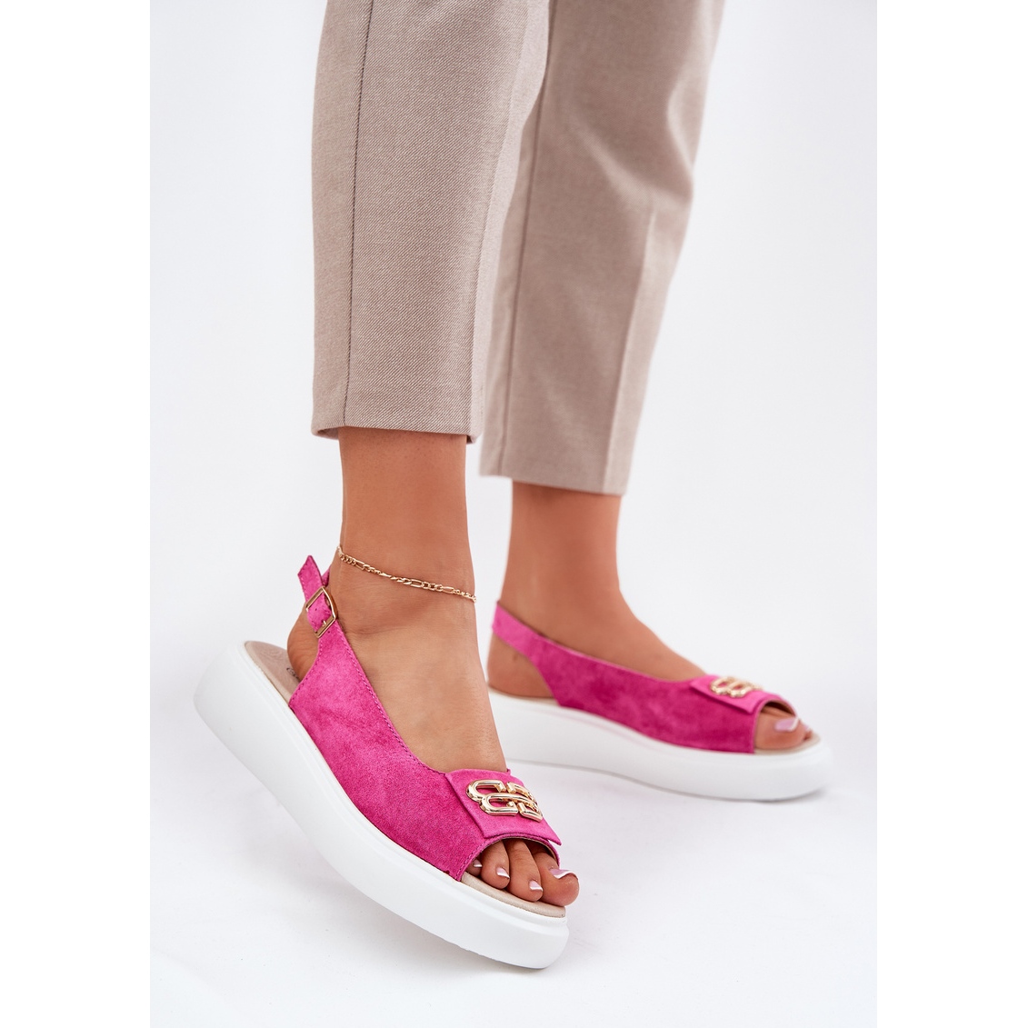 S.Barski S.Barski Sandálias de camurça feminina com um detalhe dourado S. Barski Gr51-604 Fuchsia rosa