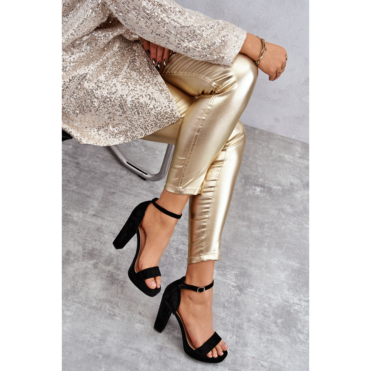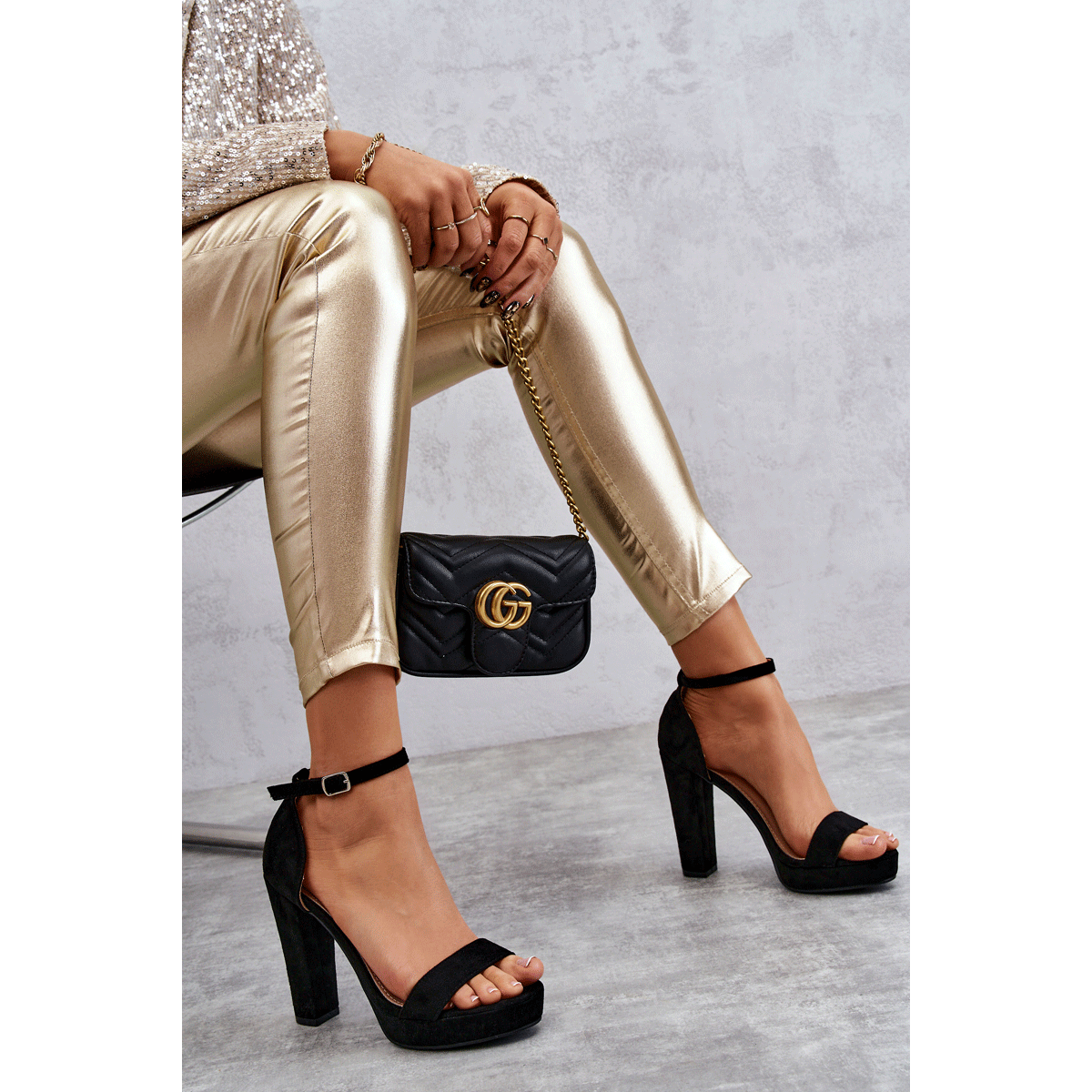 Detalhes: Sandálias de camurça no salto preto espetacular
