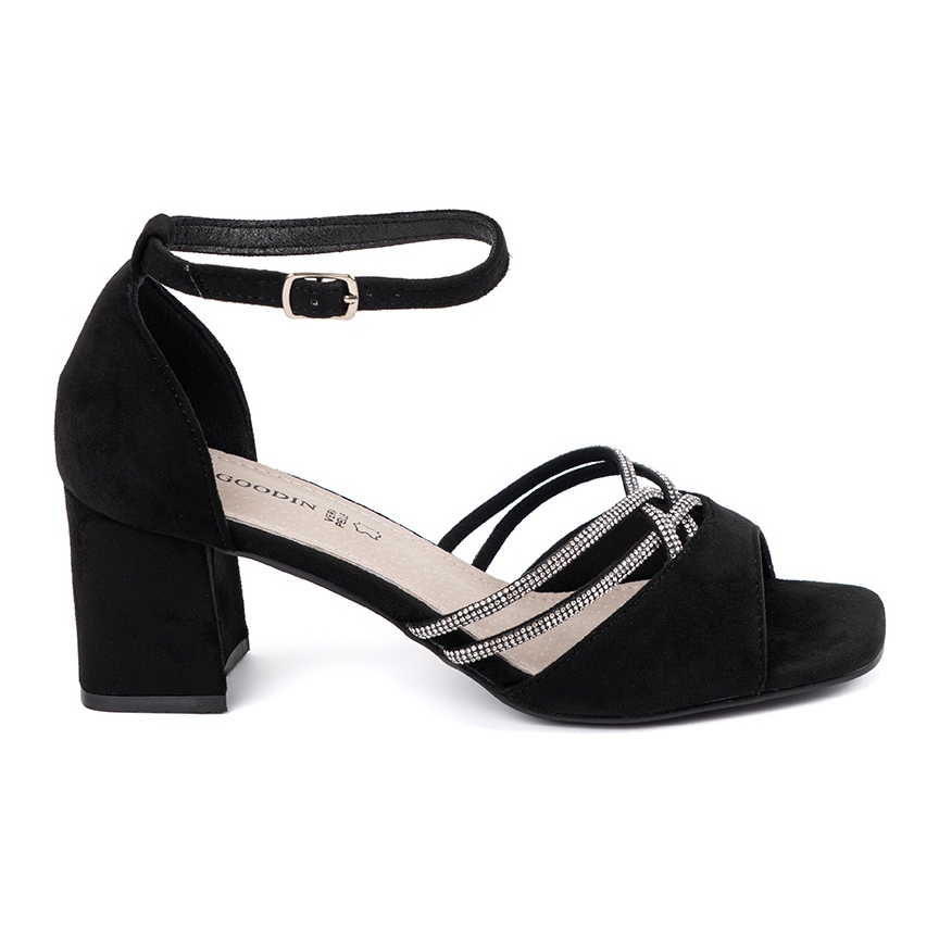 Aqui estão as elegantes sandálias de camurça preta no poste da renomada marca Goodin, que combinam clássicos e modernidade. Feitos de couro de camurça ecológica de alta qualidade, essas sandálias não apenas parecem bonitas, mas também oferecem conforto de desgaste único. O interior terminado com couro natural garante a circulação de ar, o que é extremamente importante em dias quentes.