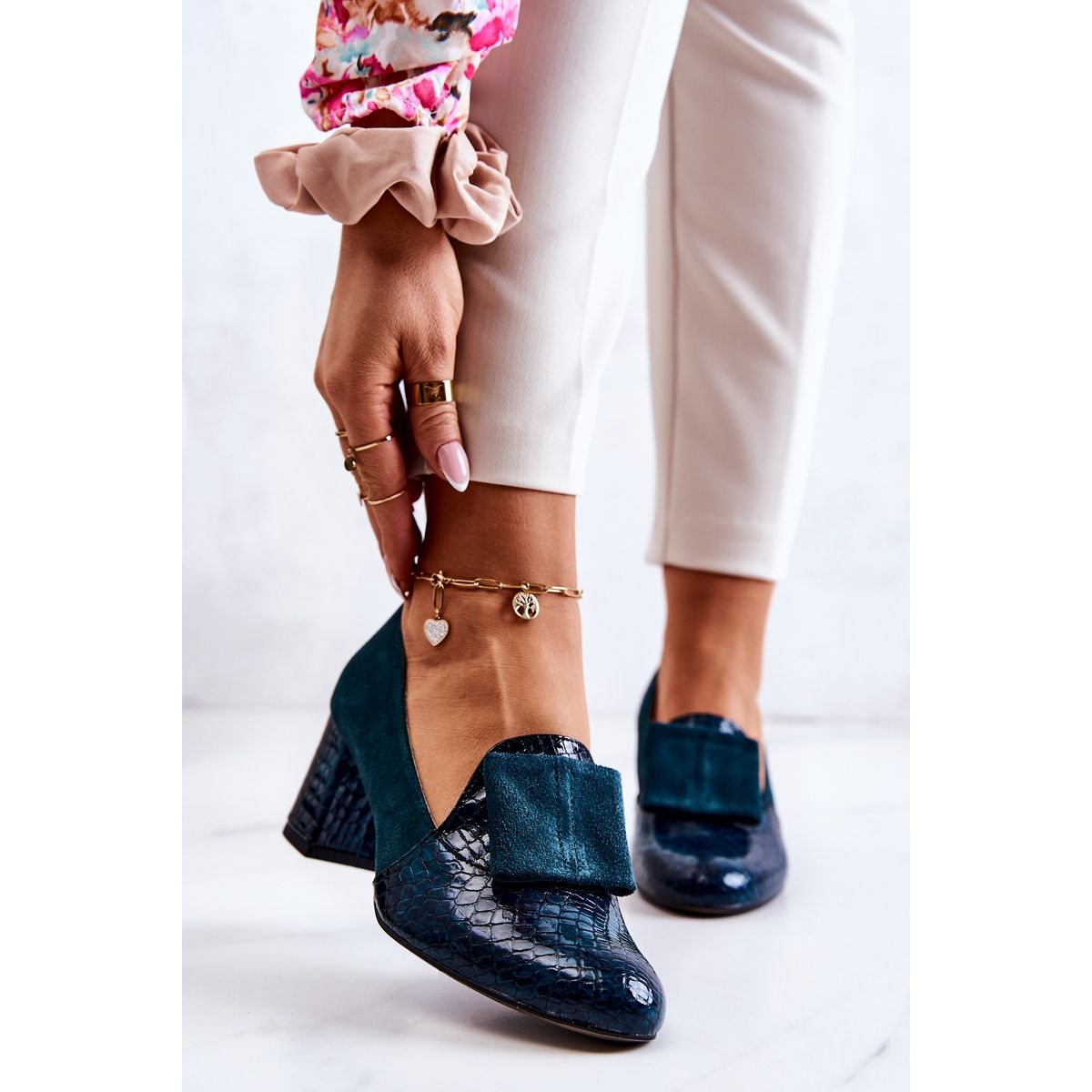 As bombas sensuais de Diana são uma combinação de um clássico com um sotaque elegante - feito de couro natural em acabamento de camurça com um padrão eficaz de pele de "cobra". O arco sutil na frente adiciona um estilo feminino, o nariz redondo e um poste estável com uma altura de 6 cm de conforto garantida e uma certa etapa ao longo do dia.