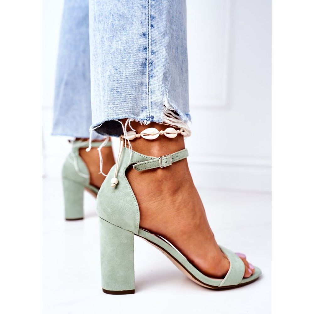 Confeccionadas em camurça ecológica de alta qualidade, as sandálias têm um aspecto extremamente elegante e sua cor verde intensa dará personalidade a qualquer estilo. Uma palmilha macia em couro ecológico e um espigão cuidadosamente desenhado de 9 cm de altura garantem conforto no uso, para que você possa desfrutar de longas horas em pé sem se sentir cansado.