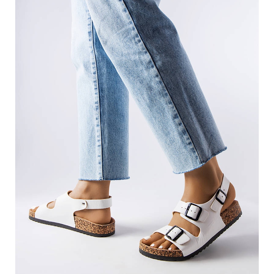 Estas sandálias caracterizam-se por uma estética clássica aliada a elementos modernos. Têm uma cor branca da moda, enquanto a sola preta contrastante acrescenta carácter e exclusividade. Graças à utilização de fivelas como elementos de fixação, as sandálias permitem um ajuste preciso ao pé, garantindo assim um conforto individual de uso.
