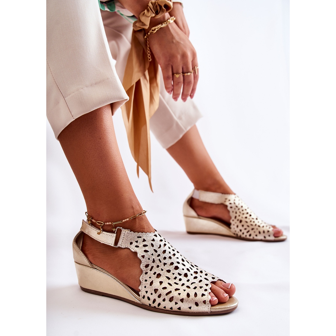 PA2 PA2 Sandálias de couro a céu aberto em cunha dourada Sellena dourado